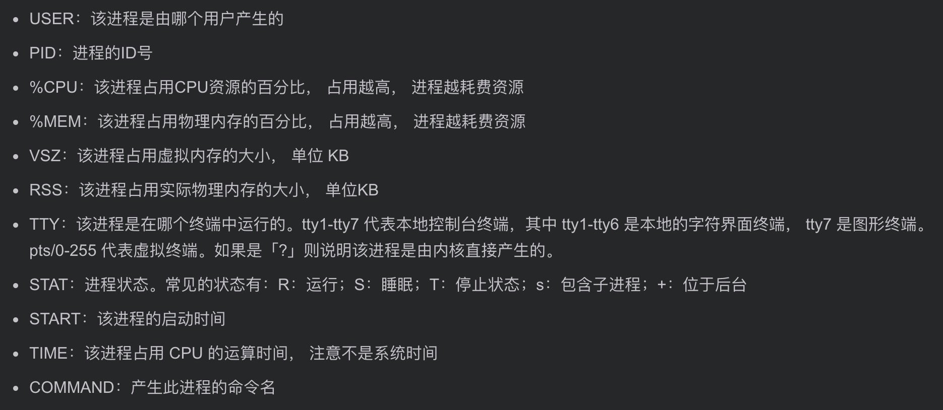 另外,附一张 ps aux 命令输出的内容中,各列的含义。