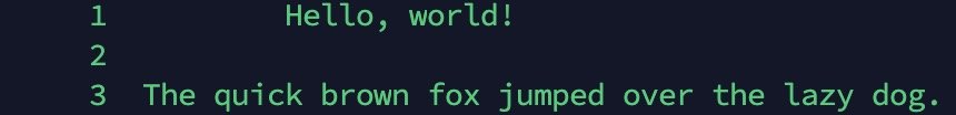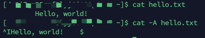 -A,显示文件中的非打印字符,比如制表符、换行符等(效果如图一)。利用这个选项可以发现文件行尾隐藏的回车符,从而判断这个文件是否是 Windows 风格的文件。PS:Windows 风格的文件行尾有回车符+换行符两个字符,而 Unix 风格的文件行尾只有换行符。
